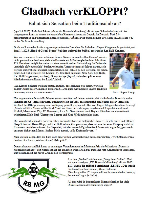 Weiterlesen … Vorberichte FC St.Pauli 1910 - BORUSSIA 6.4.2025